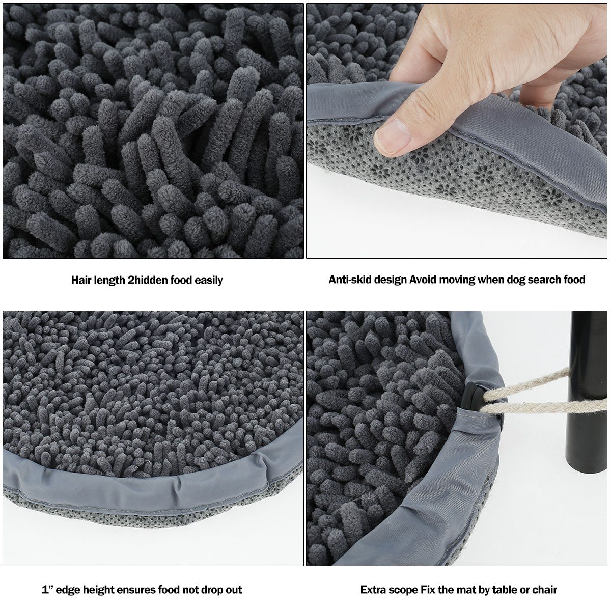 【1 Extra Strong Rope】It comes with a strong rope, you can fix the mat on the table or chair leg. The bottom is a non-slip cloth that effectively holds the mat and prevents the dog from moving the mat when your dog search food on the mat.